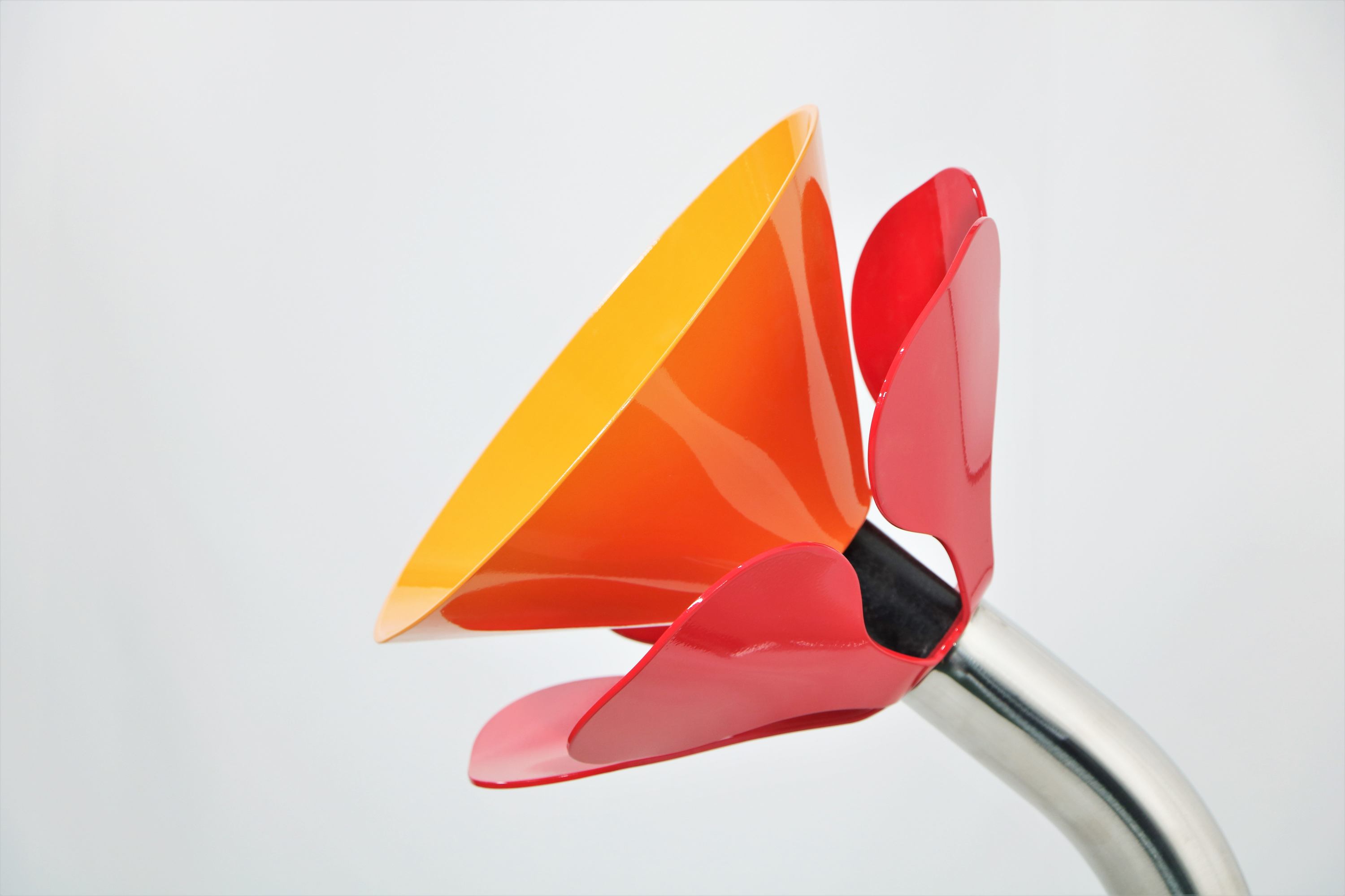 This flower is made of metal, which has good durability and corrosion resistance and is suitable for use in outdoor environments. In addition, it can be fixed by different installation methods, such as inserting it into the soil or fixing it on the concrete surface to make it more stable.