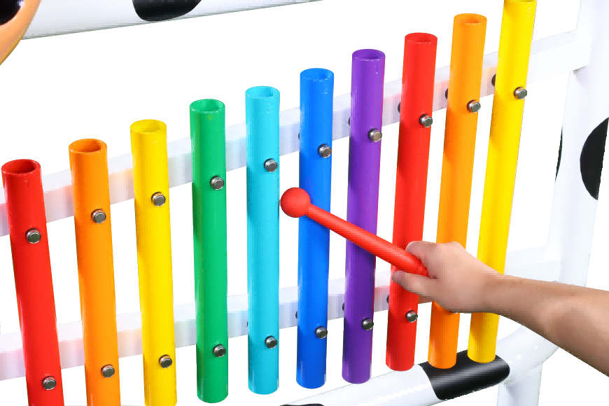 Perfect for nursery schools, pre-schools, and kindergartens, this bright and inviting metallophone is easy to securely fix to a wall, fence, or play structure and is suitable for both indoor and outdoor use. The Rainbow chimes can be purchased on their own or with rainbow trio drums and chimes to make a colorful ensemble.