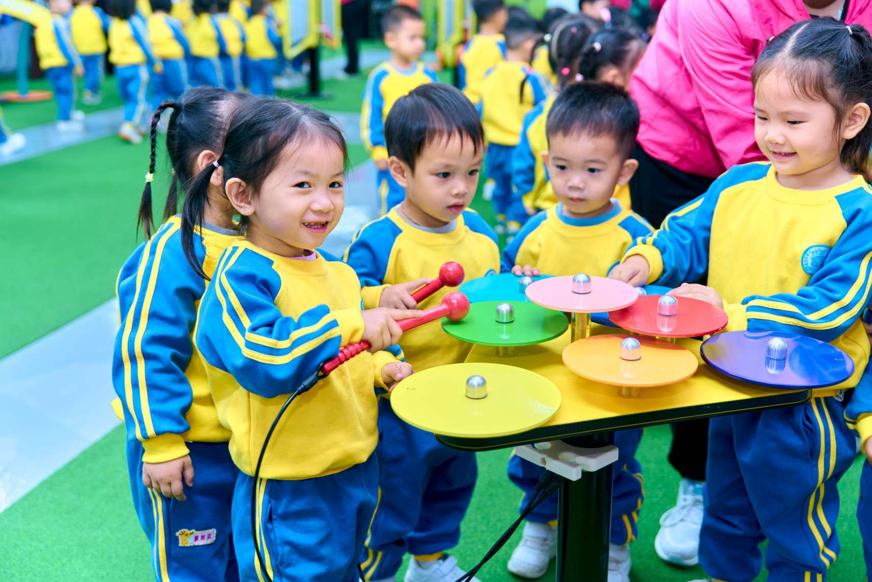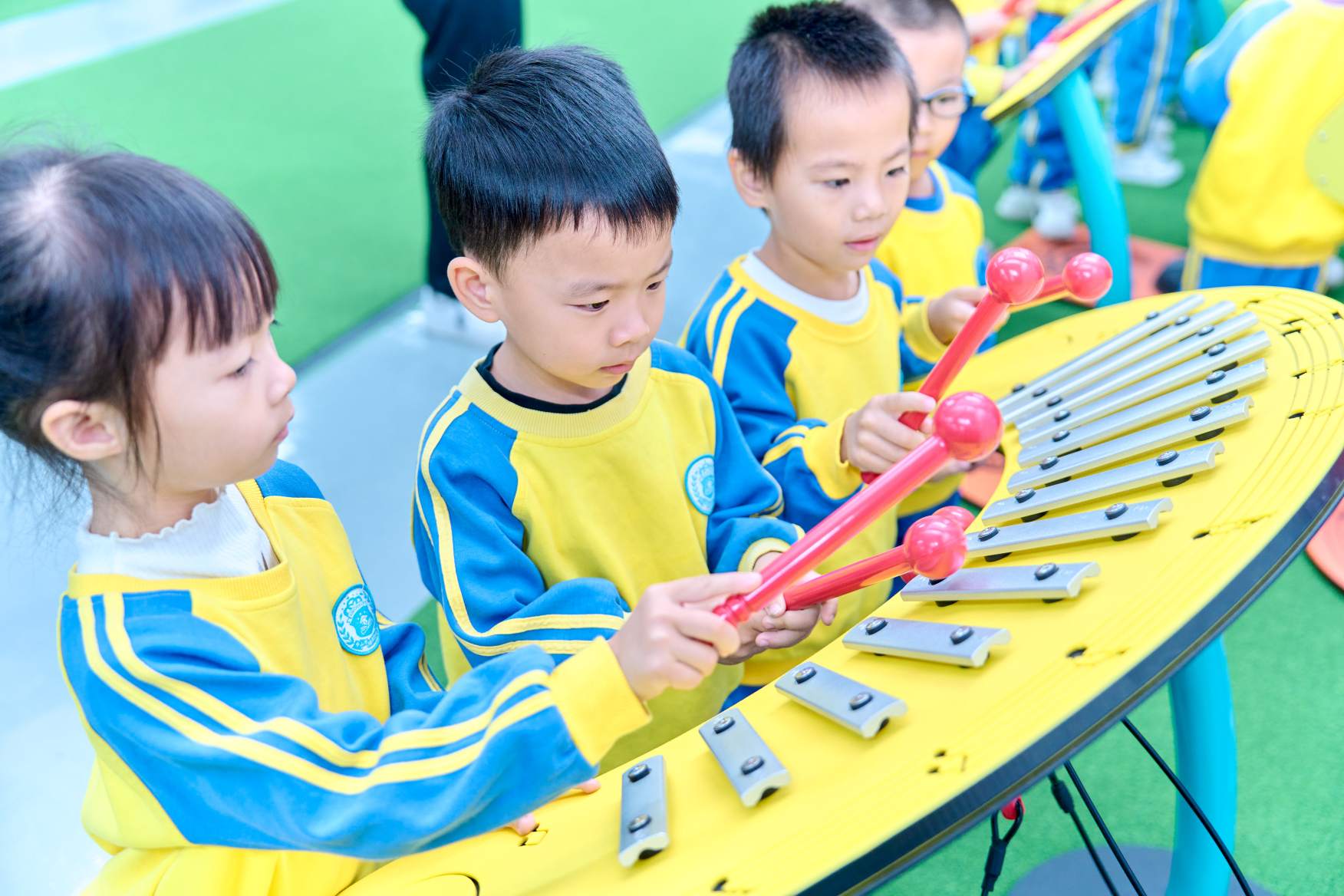 The moment the children stepped into our "Musical Instrument Kingdom," they were captivated by the vibrant array of instruments on display. We specially arranged for professional music teachers to conduct lessons and live performances for the children. In a relaxed and joyful atmosphere, the children learned fundamental music knowledge, and through interactive games and music creation, their creativity and imagination were inspired.